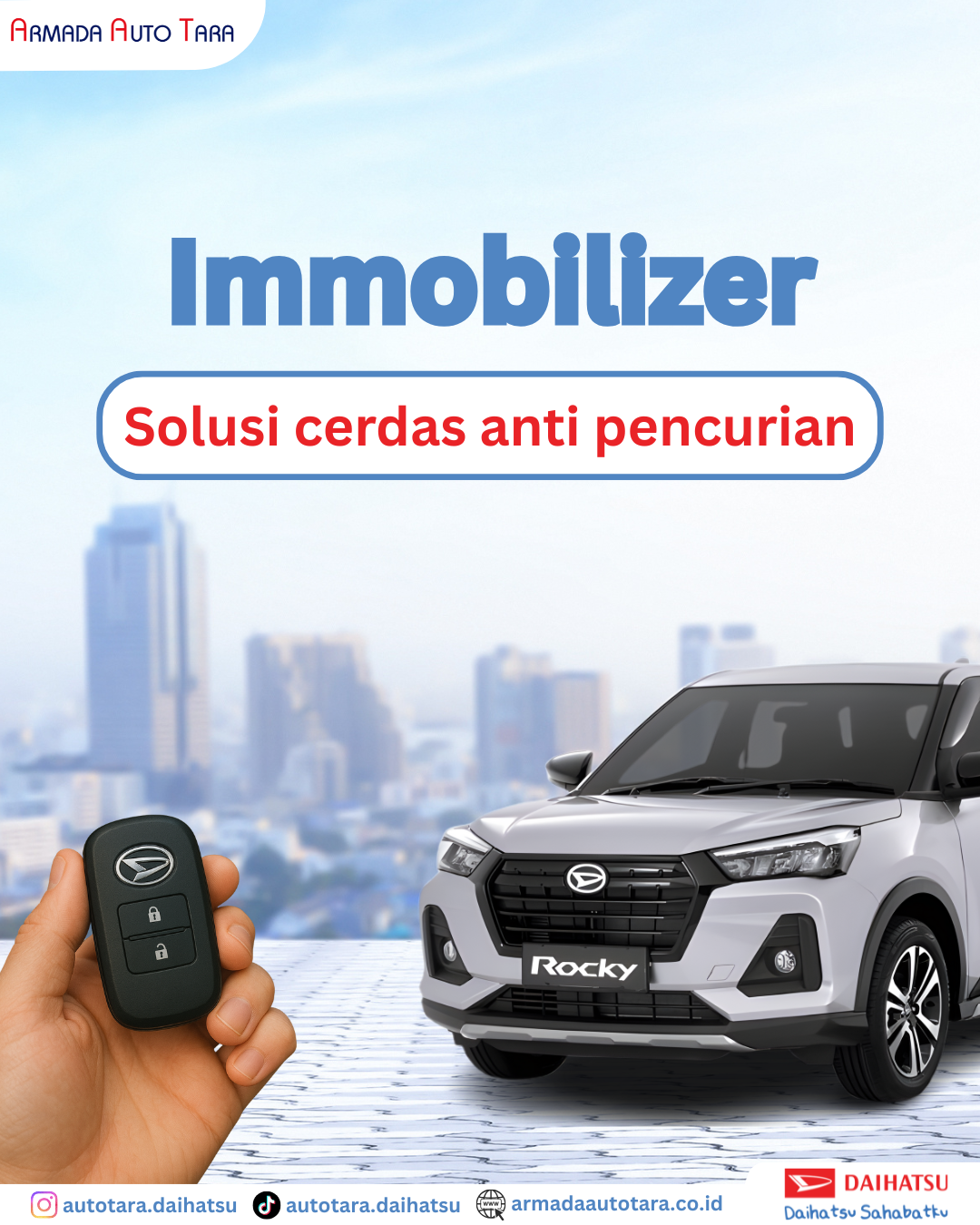 Dengan teknologi Immobilizer dari Daihatsu, mobil kamu terlindungi dari risiko pencurian.